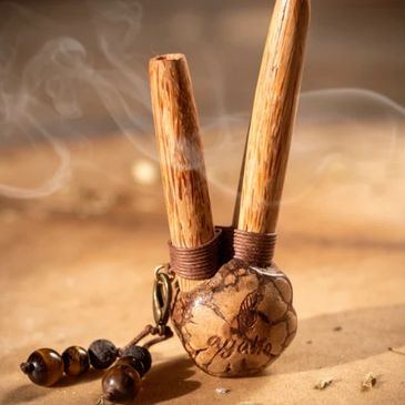 Rap’e is a traditional snuff made from dried and powdered Tobacco rustica, along with a variety of medicinal plants and ashes from all over the Amazonian rainforest. Some rapeh blends are very grounding and typically taken as an adjunct to deep meditation, some are used primarily for cleansing the physical body. It is taken through the n